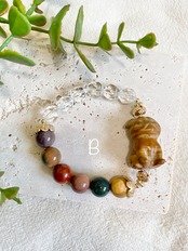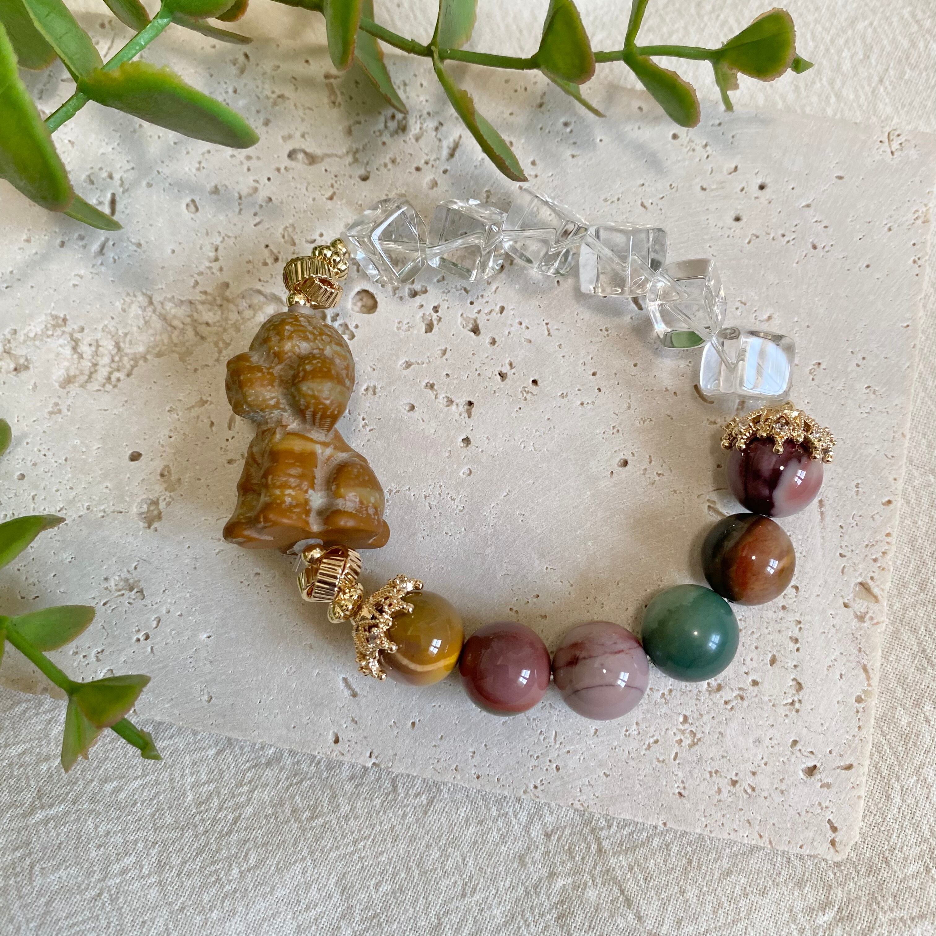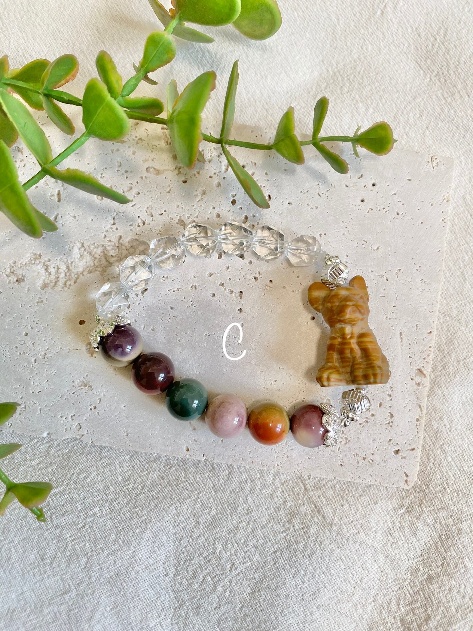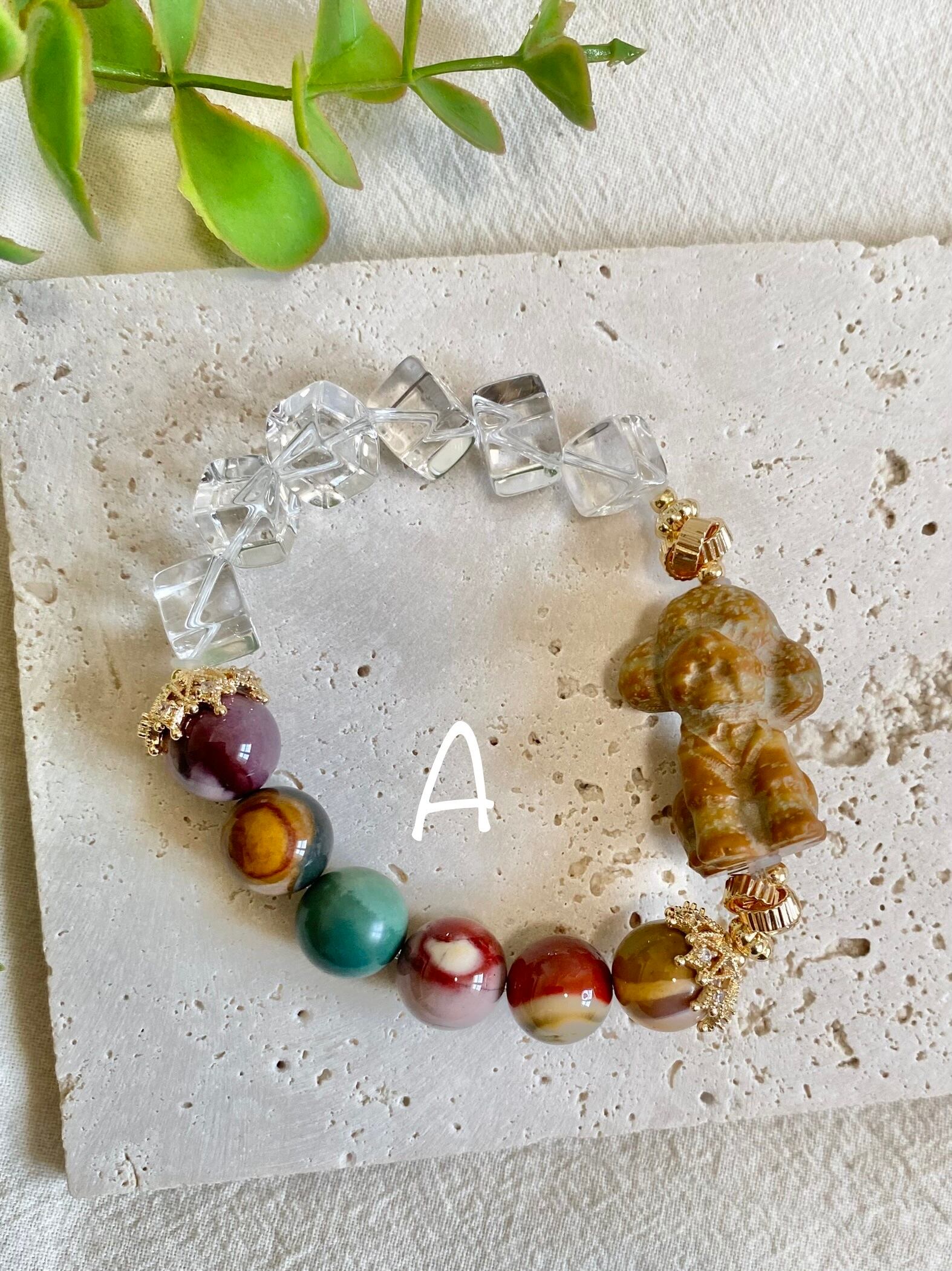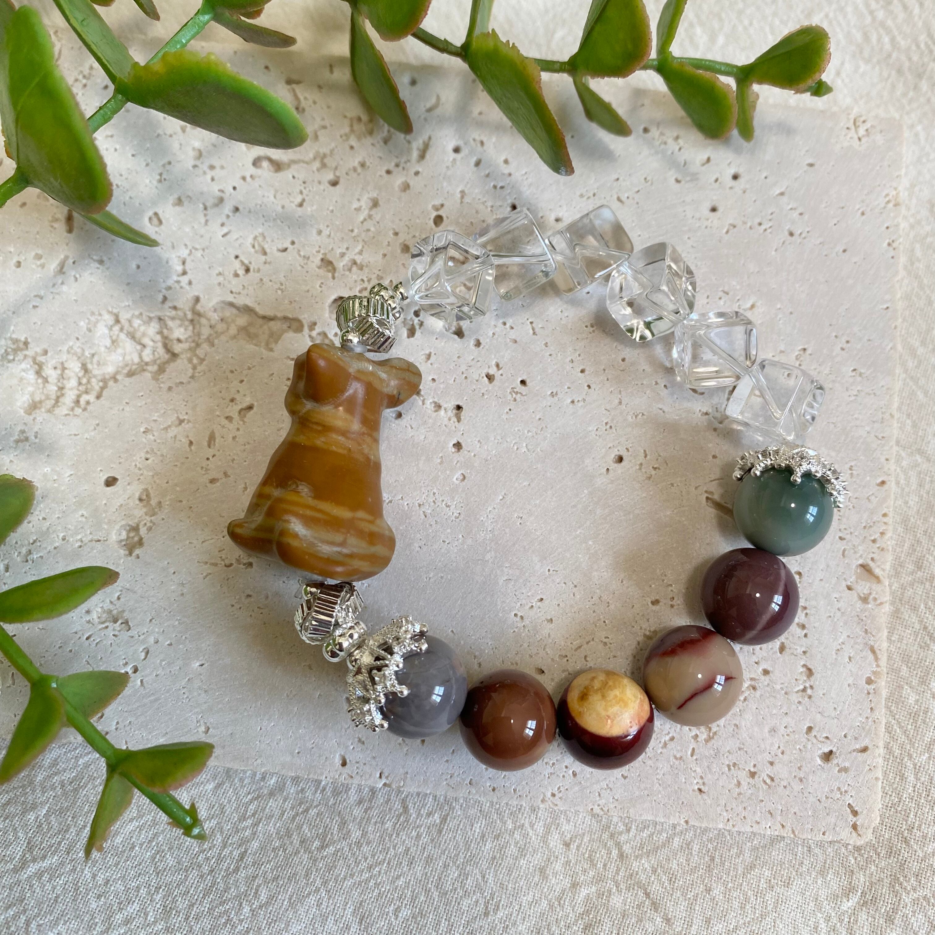 愛らしいプードル、パグ、フレンチブルドッグ、チワワをモチーフにした、天然石のブレスレットです。カラフルなアラシャンと、クリアなカット水晶を合わせて、天然石を可愛らしく仕上げました(*ˊᵕˋ*)