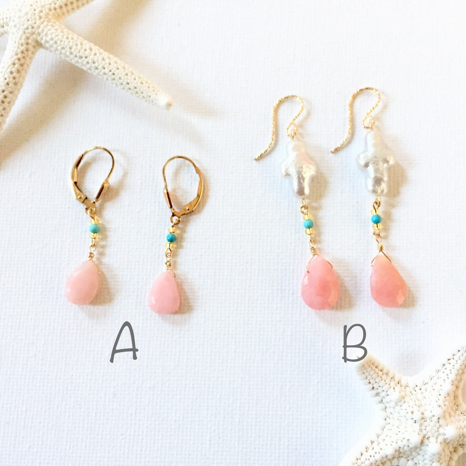 優しい色味のピンクオパール。アクセントに天然ターコイズをプラス。